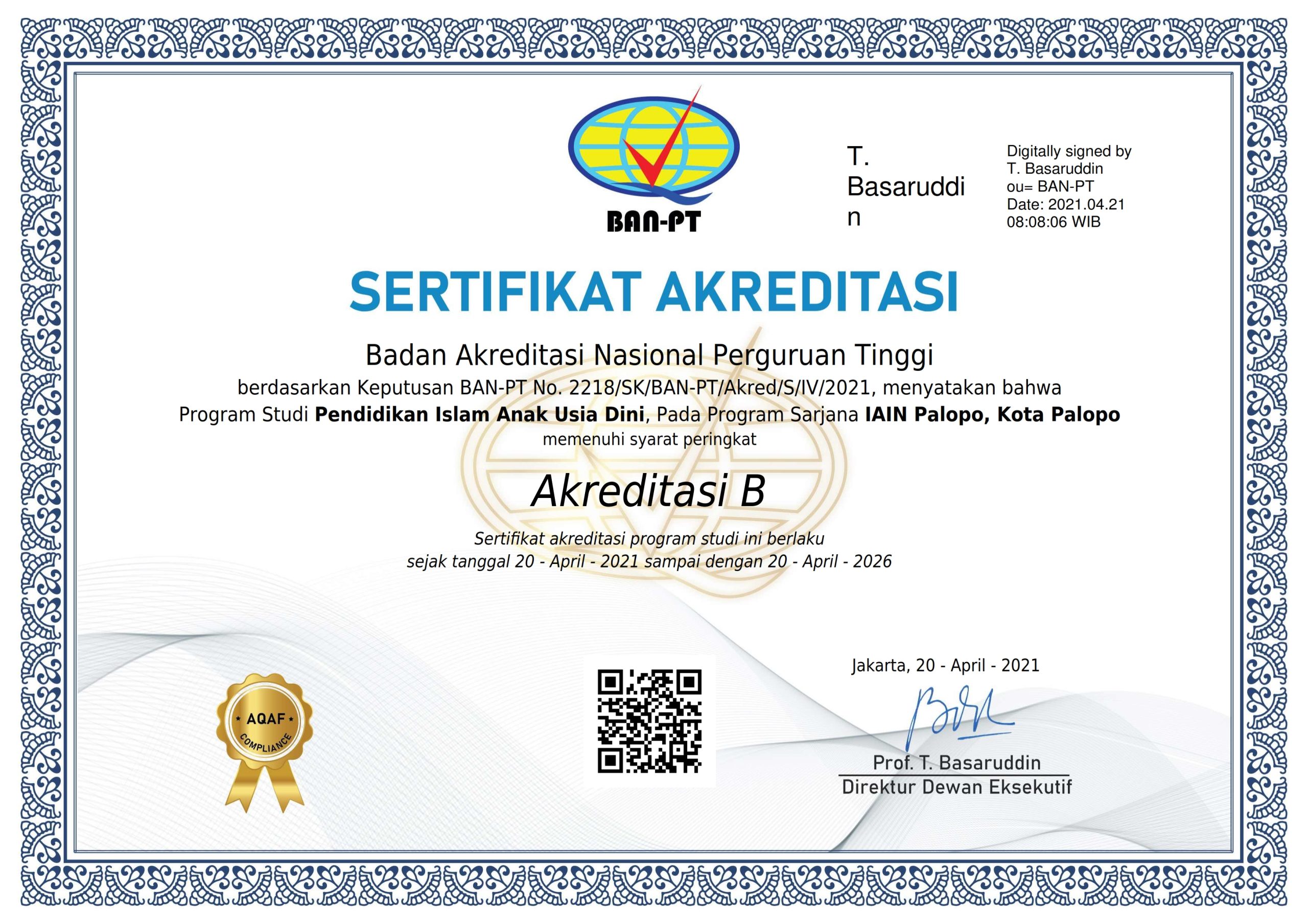 Saat ini, PIAUD UIN Palopo berada pada Akreditasi B